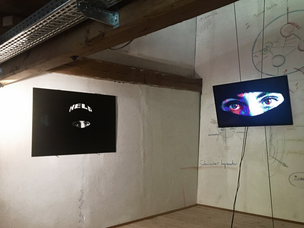 In der aus diesem Bild entstandenen Videoarbeit begleitet ein von mir geschriebener Test den Weg von der Dunkelheit ins Licht, geführt und angetrieben von der Hoffnung. Mein Kopf mit all seinen Worten und Bildern ruft nach Hilfe in mir und von mir, falls niemand meinen Hilferuf sieht. Die Hilfe sind genau diese immer wieder gehörten Gedanken im Kopf. Die Tiefen, das schwarze Loch birgt in sich, die Möglichkeit des weißen Lichts. Es wird heller und für eine Weile siegt die Hoffnung.