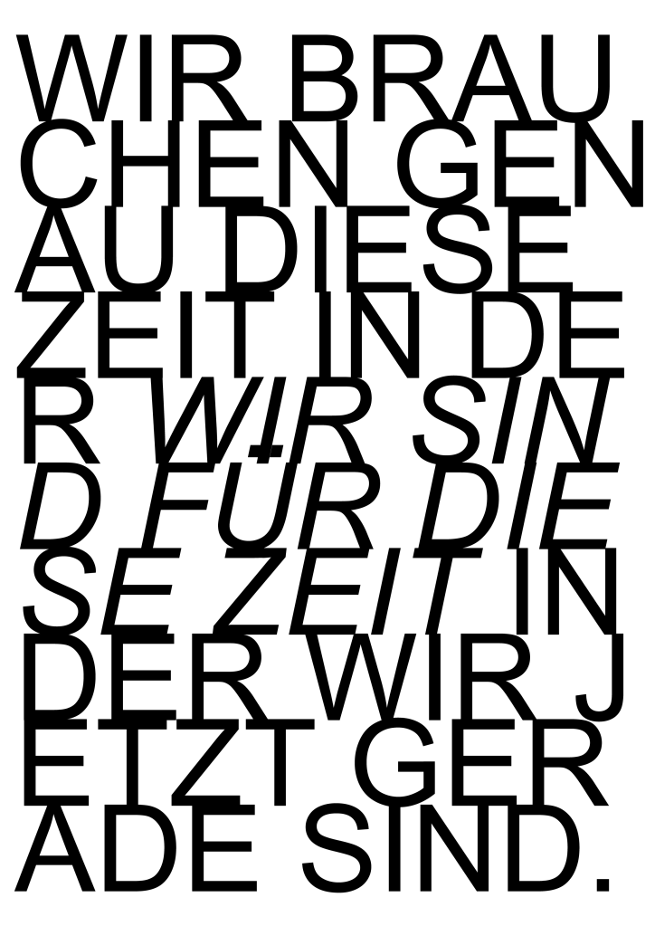 Ich versuche Frieden zu stiften, die Stringtheorie neu zu definieren, mich dabei zurückzulehnen, mich vor den eigenen Wünschen zu bewahren, Worte zu verlieren, hochzuspringen um Auszuweichen und Einblicke zu gewähren. Es sind Worte, die teilweise hinter die Kulissen blicken lassen, es sind Gedanken meiner Familie und Freunde – It´s on me II – Meine Fragen an sie lauteten: Was wäre, wenn man euch zuhören würde, wenn die Worte, die ihr wählt wie Zaubersprüche wären, die in Erfüllung gingen. Würden wir sie einfach rausschreien, aus Wut, aus Angst, aus Überzeugung? Wären wir vorsichtig, wie wir uns äußern, um niemanden zu verletzen? Gäbe es etwas, das wir vielleicht nie wagen würden auszusprechen, weil es Vertrautes zu sehr verändern könnte?
