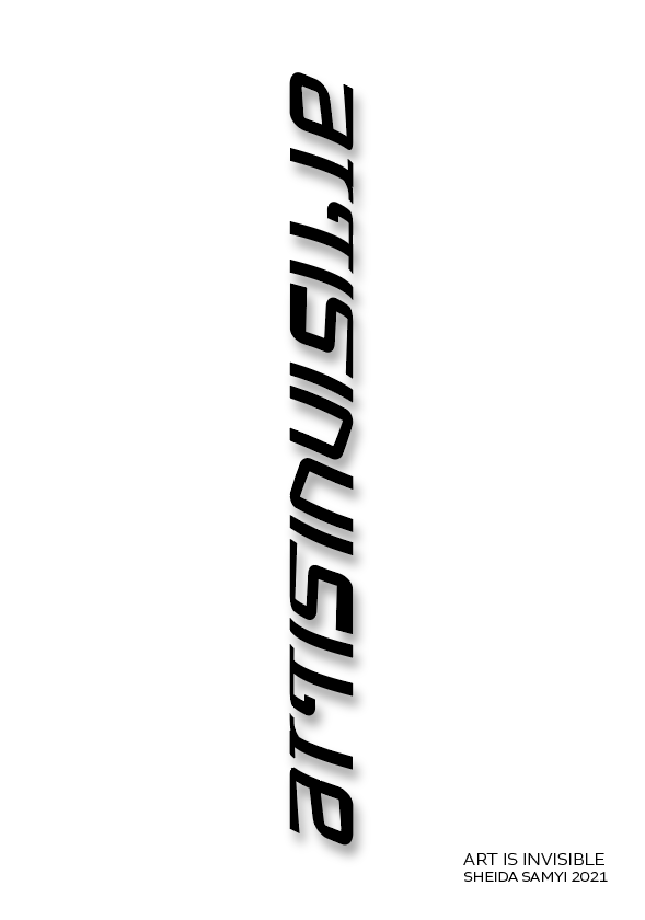 Ein Informationsständer, ein Hinweis auf ein unsichtbares Kunstwerk, das dadurch selbst zu einem wird. Die von beiden Seiten lesbare Schrift „ART IS INVIBLE“ zu entziffern ist einer der Schritte etwas nur dann zu erkennen, wenn man die Perspektive verändert und es genauer betrachtet. Das macht etwas sichtbar, von dem man glaubt, dass es gar nicht existiert.