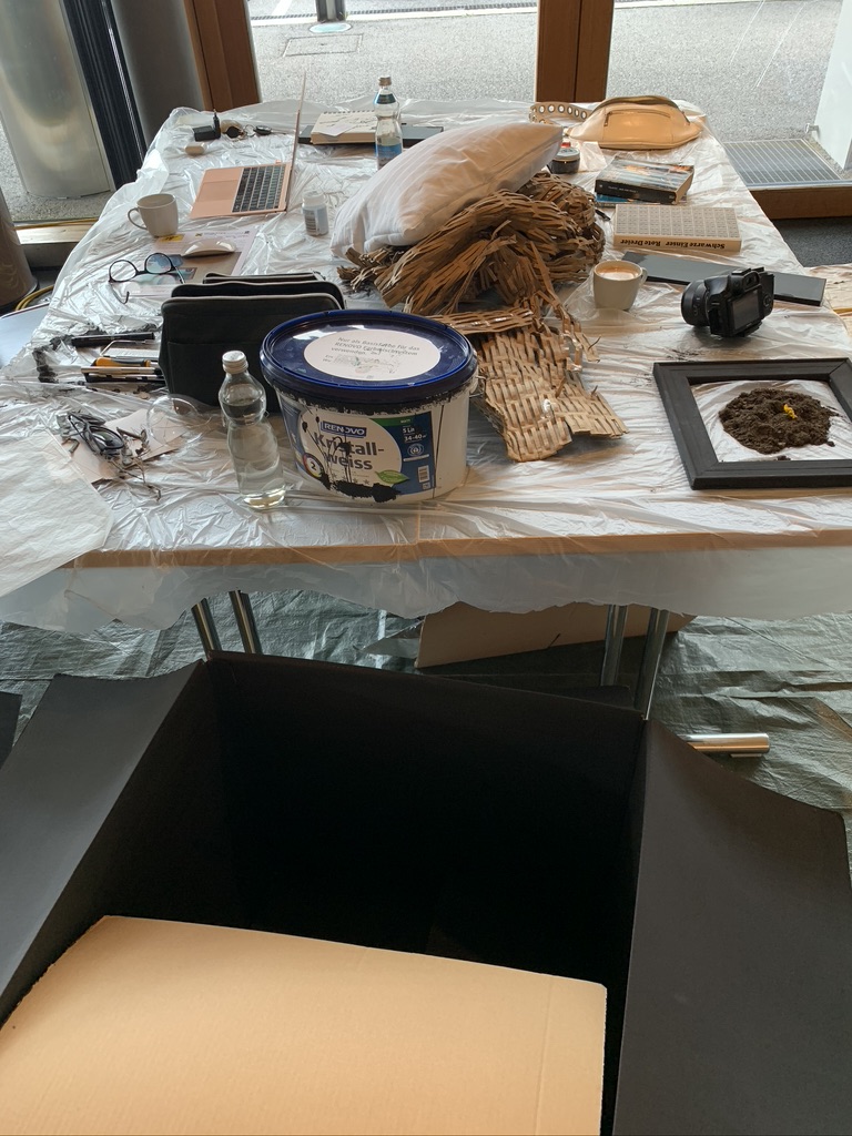 Während meines Aufenthalts wurde das Thema vielschichtiger – und zugleich klarer. Die Umgebung, die beeindruckende Natur, mein Fokus und die mich umgebende Menschlichkeit führten mich zur Essenz der Schönheit: den vier Elementen als Ursprung allen Lebens. Die Dunkelheit steht symbolisch für das Verborgene, das Übersehene. Die Schachtel wiederum repräsentiert die verlorene Heimat – thematisch inspiriert durch das Flüchtlingsthema, aber übertragbar auf unseren gesamten Planeten.