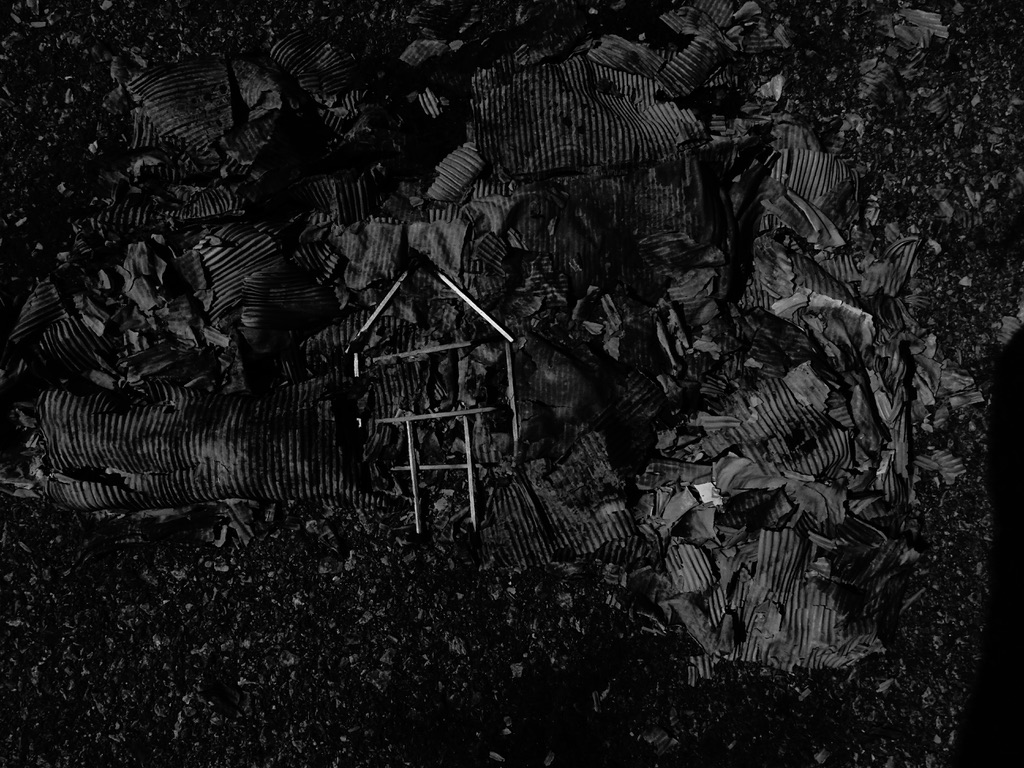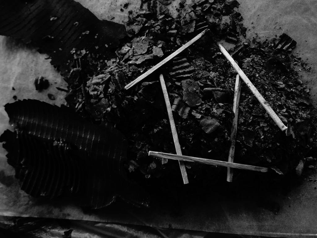 Wie in all meinen Arbeiten spielen Schrift und Sprache eine zentrale Rolle. Während dieser Woche begab ich mich mit meiner „Heimat“ auf die Suche nach den vier Elementen – ihrer Schönheit und Kraft. Diese „Heimat“ kam mit Luft, Erde, Wasser und schließlich Feuer in Berührung. Doch bevor sie entzündet werden konnte, wurde sie – wie es der „Zufall“ wollte – während des Trocknens in der Sonne versehentlich entsorgt. Anfangs empfand ich Traurigkeit, doch dann erkannte ich die Stimmigkeit meines Konzepts: Es war eine eindringliche Veranschaulichung von Unachtsamkeit. Aus der Asche der verbrannten „Heimat“ und den übrig gebliebenen Streichhölzern entstand eine neue „Heimat“. Das Leben findet immer einen Weg – und einen Ort.