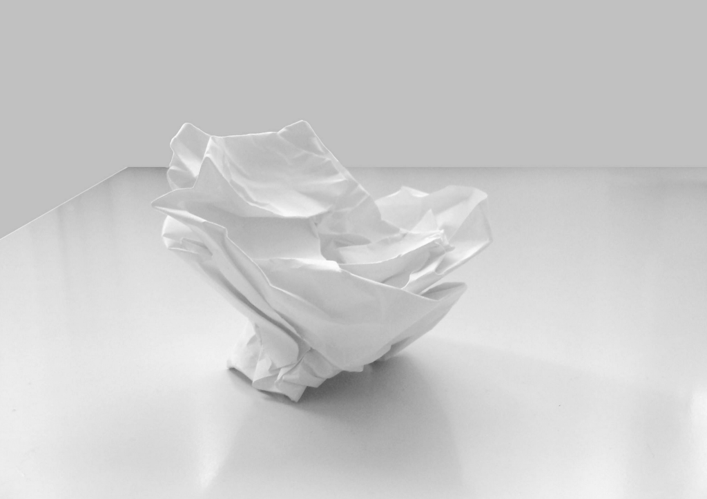 The crumpled blank sheet of paper is not only a symbol of abject thoughts and the failure to write them down, to read, to understand, but is also considered as a place for new, a place to philosophize in order to exhaust all possibilities to change perspectives. Value-free, again and again and as long as you want, without aim, without end .