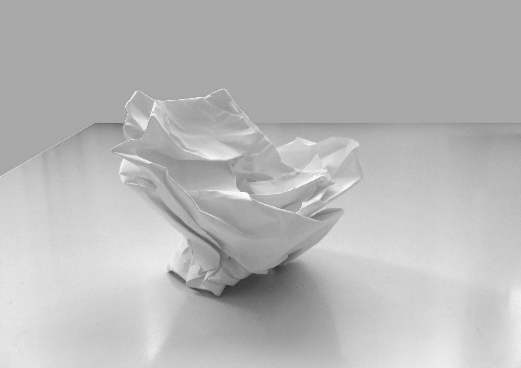 The crumpled blank sheet of paper is not only a symbol of abject thoughts and the failure to write them down, to read, to understand, but is also considered as a place for new, a place to philosophize in order to exhaust all possibilities to change perspectives. Value-free, again and again and as long as you want, without aim, without end .
