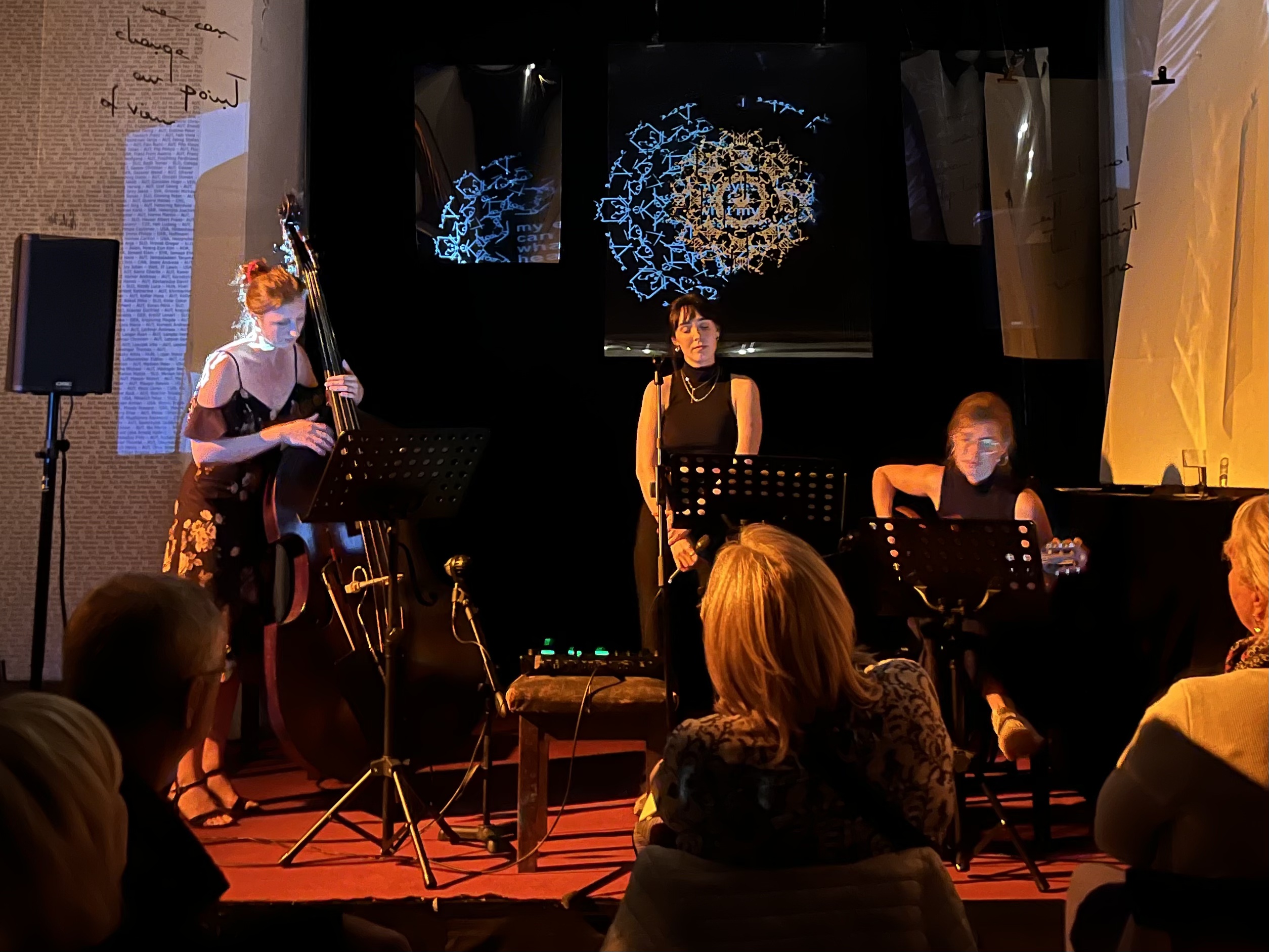 Ich wurde eingeladen das Bühnenbild in der Villa For Forest – Villa am Ring 21 am 16. 9. 2023 für Zefra Collective zu gestalten. Die Zusammenarbeit mit diesen außerordentlichen Musikerinnen war auf vielen Ebenen bereichernd. Ihre Musik, die sich auf meine Texte von INSIDE OUTINNEN basierte, sehr berührend.