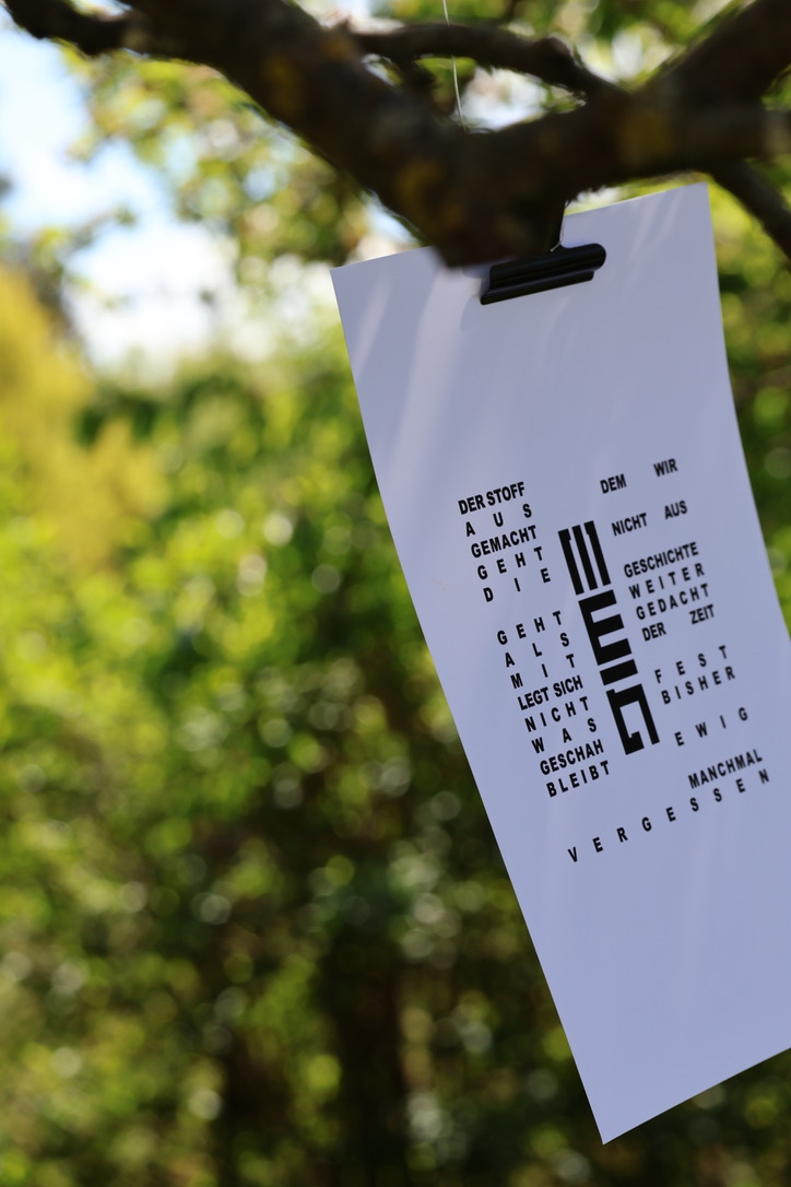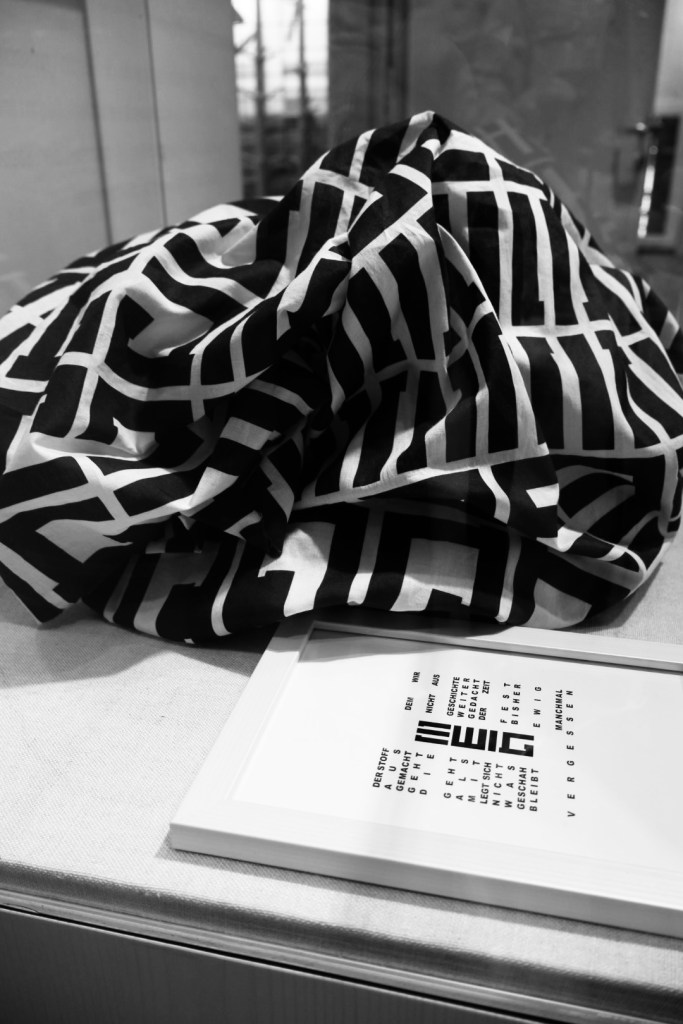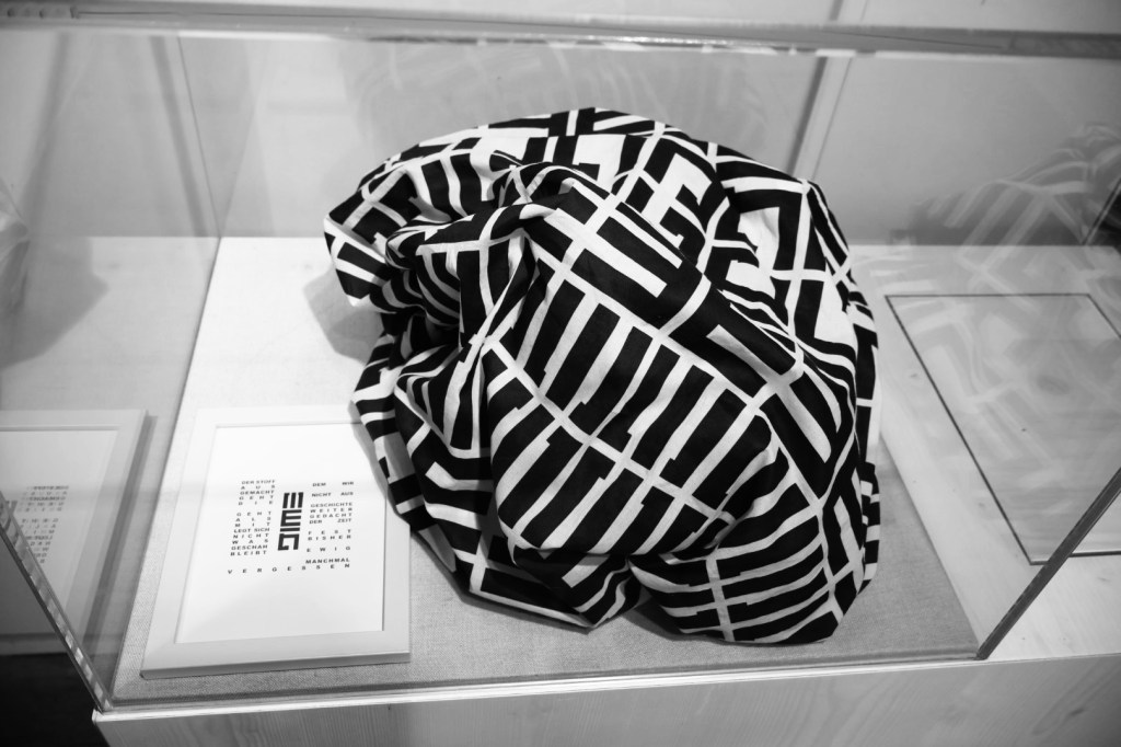 Die Zeit im Museum. Ein Versuch sie festzuhalten, wird verworfen, aufgehoben und bewahrt in einem gläsernen Kubus. Wir haben einen Einblick, müssen sie genauer betrachten, ihr unsere Zeit widmen, erkennen ein Muster, haben aber keinen Zugriff auf sie. Sie bleibt scheinbar unberührt und vergeht. Unabhängig und unbeeindruckt, am Ende irgendwann in der Ewigkeit bleibt etwas davon übrig, oder auch nicht.