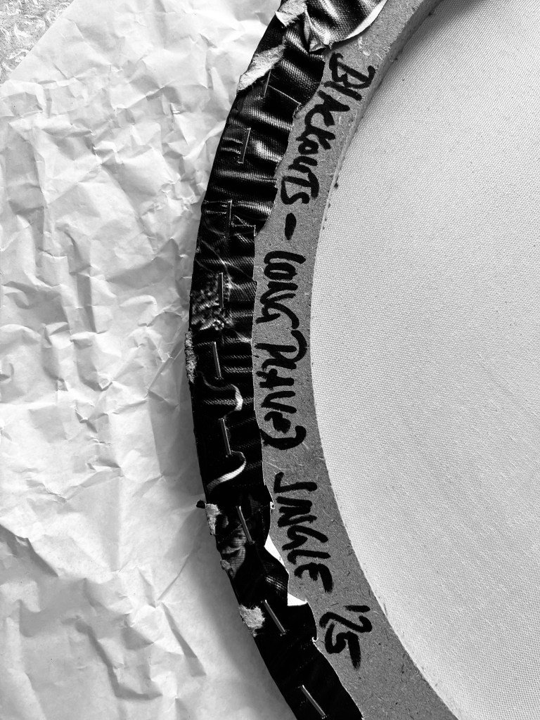 Schwarz. Schwarze Löcher. Blackouts | Verlorene, unauffindbare Gedanken gleichwie das Fehlen von Licht. Am Anfang. Das Ende. Trauer. Unsichtbare Sichtbarkeit. Imagination. Diese Stichworte mit vielen Gedanken und Fragen, die langsam ans Licht gekommen sind, haben einen (Unter)Grund gefunden und sich niedergelassen. Transparent und durchschaubar, oder auch durch mich durch schaubar, um eine andere Seite von mir zu entdecken. Dennoch den Blick zu den Sternen in die Zukunft zu werfen um auf den Punkt zu bringen, was hier mit wem gespielt wird. Lange Zeit allein, mit Sound und ohne. Der nächste Schritt führt zu viel BLABLABLA um nichts und so ist man frei das zu verstehen, was man darunter verstehen will. So vergehen die Stunden, teilweise schmerzfrei. Die Frage, wie ich die Zeit totschlage, wird von der Frage überdeckt, ob mir am Ende noch genügend Zeit bleibt um sie zu trauern. Gegen Ende versuche ich Licht in die Sache zubringen. Wer mich kennt, kennt das schon. Der zündende Gedanke hängt in der Luft. Zur Sicherheit habe ich ihn festgehalten. Klein, scheinbar niedlich und ungefährlich. Brennen kann er aber wie ein Großer. Loslassen sollte man allerdings rechtzeitig, damit man sich nicht selbst verbrennt. Oder noch viel einfacher, Zurücklehnen, im Ruhezustand verweilen und abwarten. Das schwarze Blatt kann man wenden wie man will und vollkommen entspannt die eigenen Geschichten im Kopf beobachten. LIGHTEN UP.